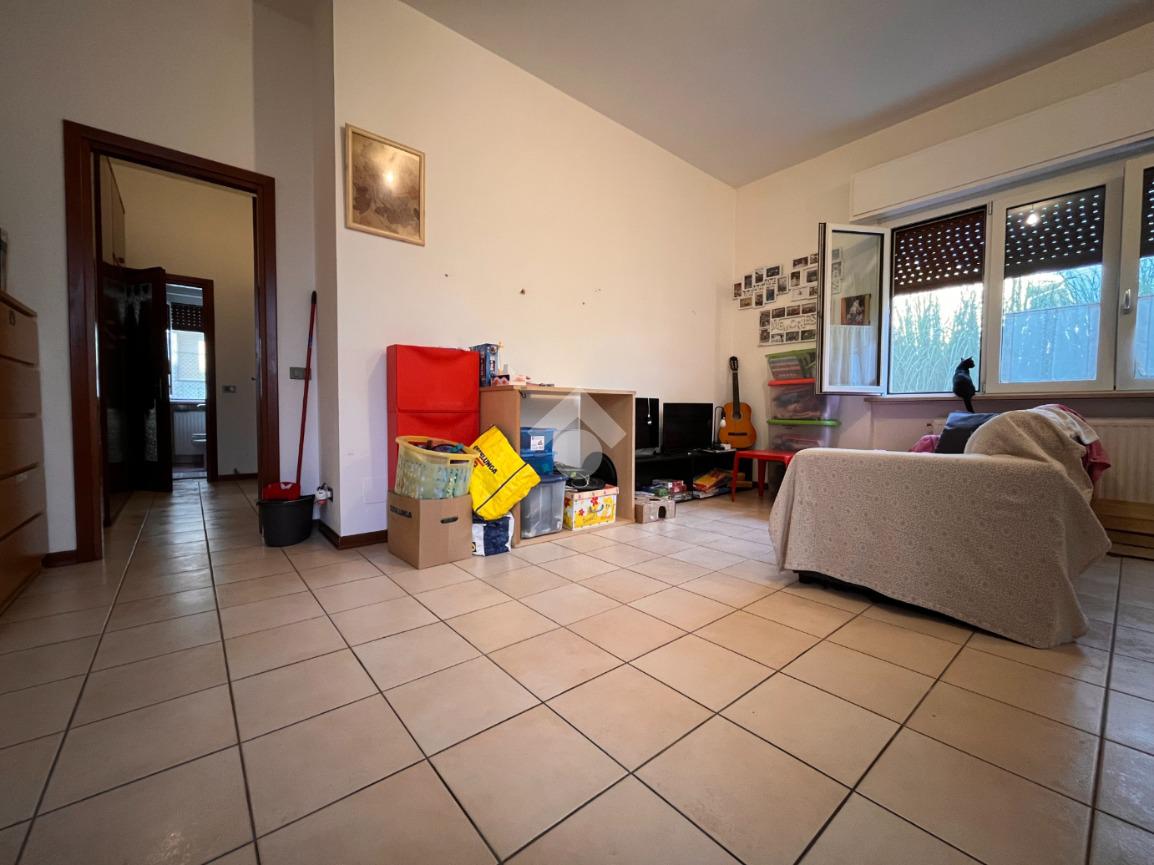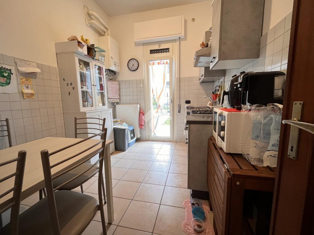 Questo trilocale posto a piano terra è composto da due camere da letto, cucina abitabile, soggiorno ed un bagno.