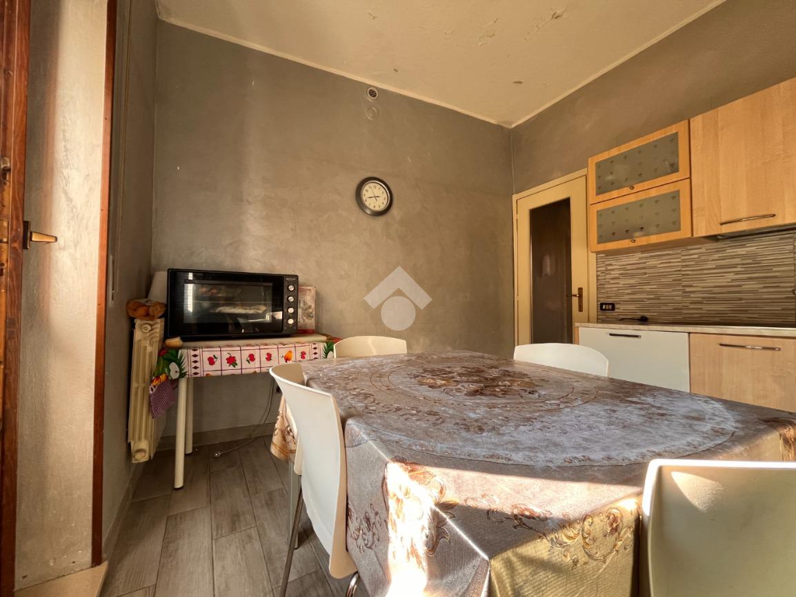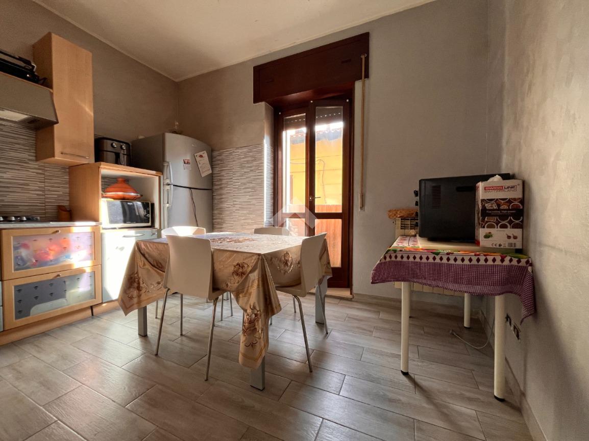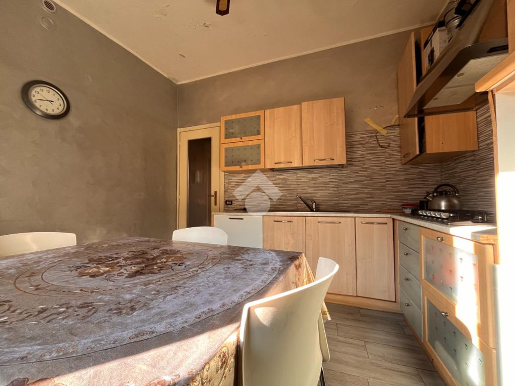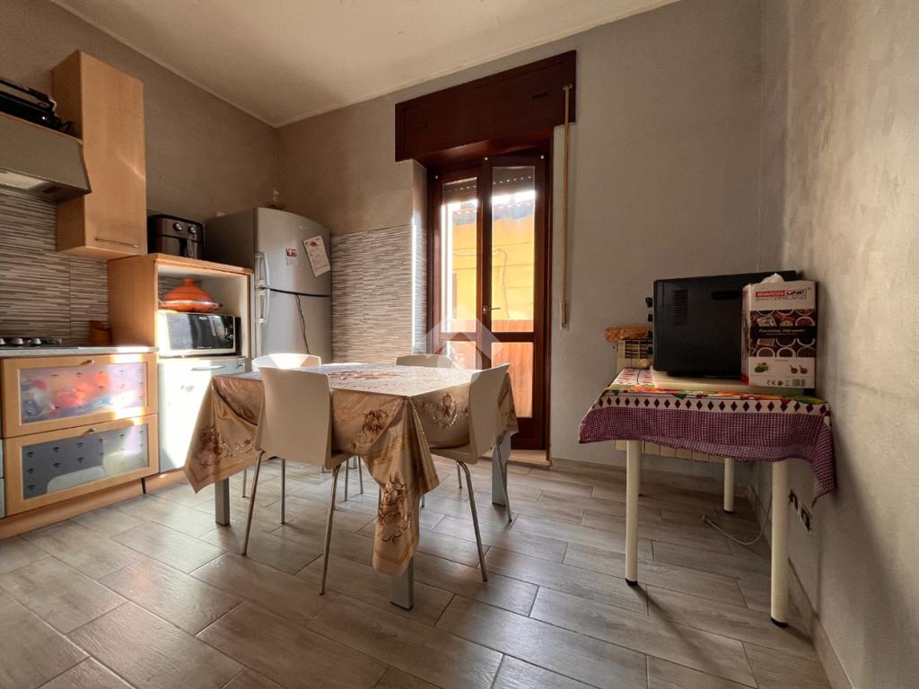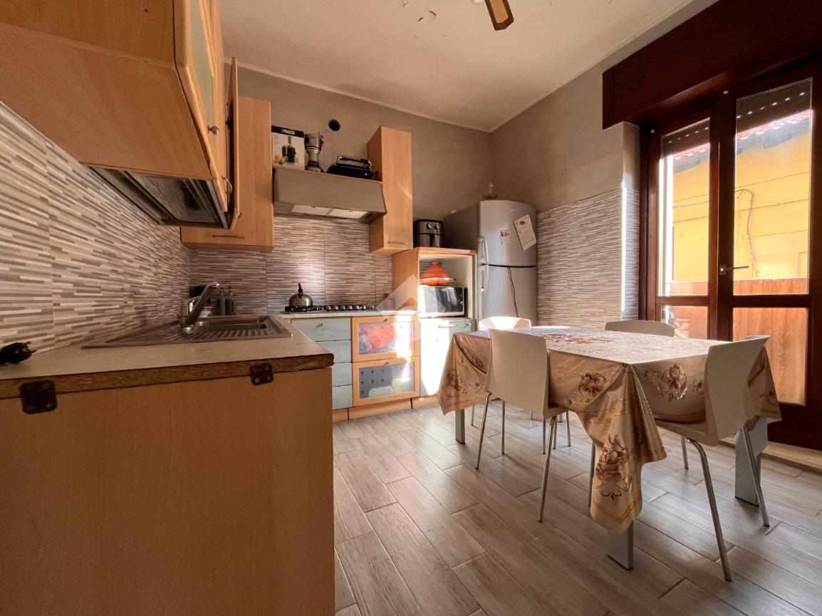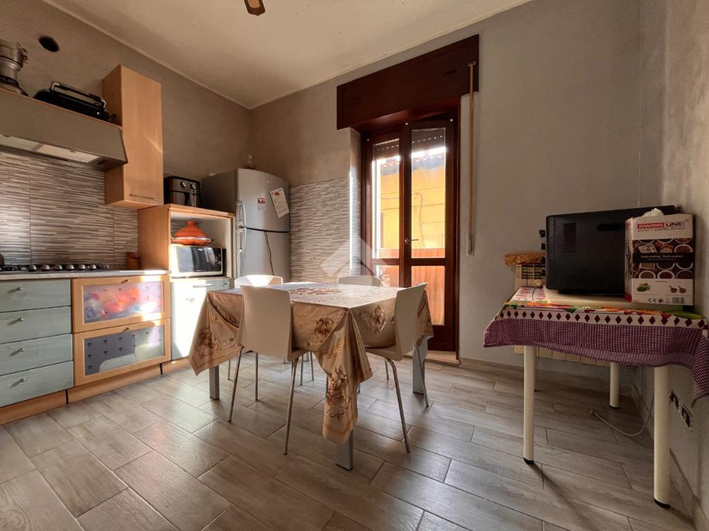 La cucina è abitabile e funzionale, con accesso diretto al balcone che dona ulteriore luce agli ambienti e offre uno sfogo esterno pratico e piacevole.